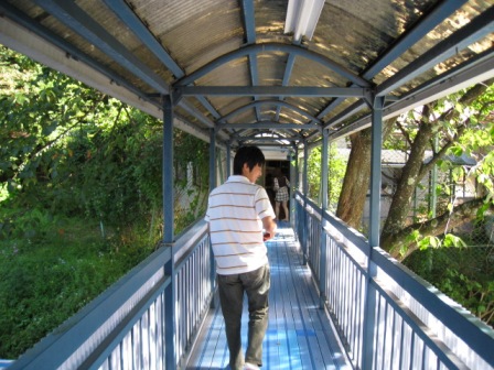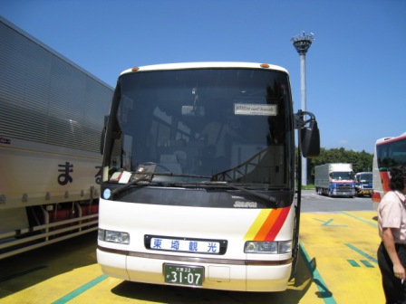 バスに揺られながら、各々景色を眺めたり、話に花を咲かせたり、眠ったり…はさすがにいなかったけど、過ごしてました。途中のサービスエリアでは停電か点検だかで、ほとんどの店がやってませんでした。さわがしい発電機をBGMに短い昼休憩。ほとんど選択肢のないお昼御飯を食べて、そそくさと目的地、なるさわ荘に向かいました。