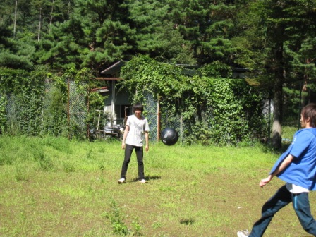 そして遅めの昼飯。炎天下でビニールシートの上で。わたくしはジョナサンに行きましたが…すいません、でもなんといっても村中先輩が一年生を統率してくれていたから安心だったのです。そのあとはトランプゲーム、大富豪(大貧民?)などをして大変盛り上がっていました。すっごい暑かったけど。みんなここで結構日焼けしてます。お疲れ様です。