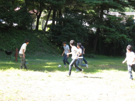 カンケリをペットボトルでやりました。ポカリです。建物がたくさんあるのでやりすかったかも。なにより、蹴る瞬間に情熱を注げばいい競技なので、身体にやさしいつくりでした。TOKIOの番組みたいにできたら面白いかもですね。