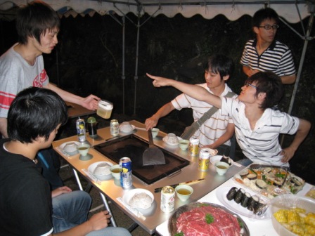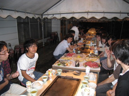 長かったか短かったかは各々にゆだねることにして、ディナ-タイムがやってまいりました。BBQです。みんなお腹いっぱいになったかな。楽しそうで何よりでしたが、皆さん無茶ぶりはやめましょう。FLAは達成感と孤独感が味わえるサークルだそうです。どんなだよ。