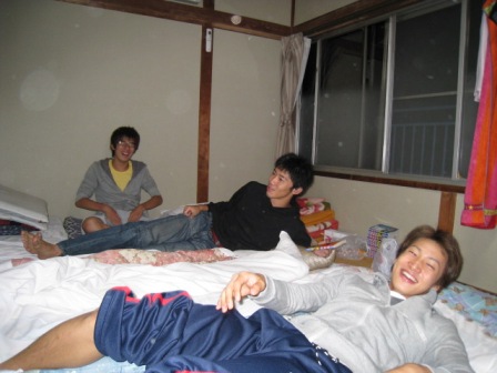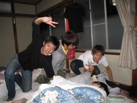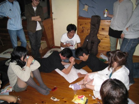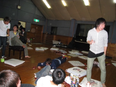 音楽サークルの合宿にはピッタリな所なわけです。テニスも出来るらしいよ。CMみたいになりましたが、そんななるさわ荘に到着。そしてさっそく、部屋割りです。天命に任せよう、ということであみだくじを採用。しましたが、線が少なすぎて少し失敗気味。でも名前はランダムに書いてもらったんだから…うん。で、女子部屋とかメガネ部屋とか決まりました。部屋割り完了。