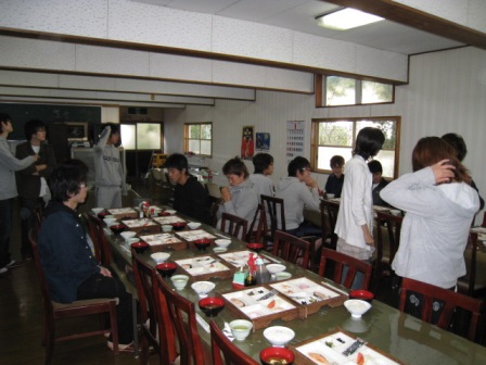 朝ご飯。こういうところで性格が出る気がします。準備を手伝う人、手伝おうとする人、突っ立ってる人、まだ眠たい人…最後のは性格じゃなくて低血圧的な意味ですが、なんやかんやで食卓の出来上がり。いただきます。