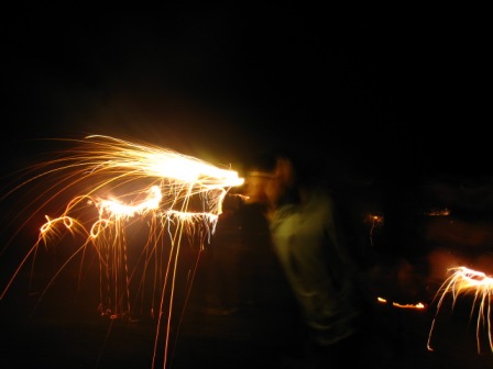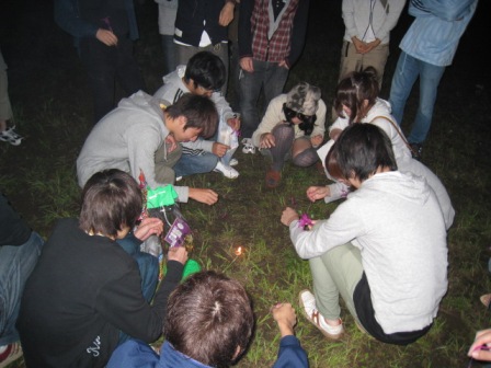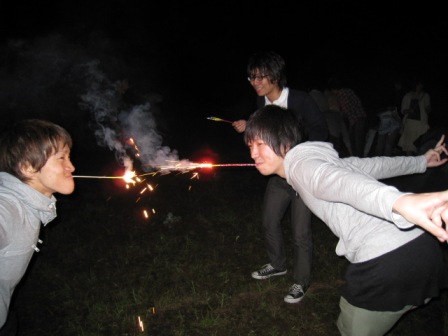 そしてそして、ライブを楽しんだ後は、去年できなかった花火タイム。花火は8月中に吉田さんに買ってきてもらっていました。同じ過ちはいたしません。手持ちから、ドラゴン(だっけ?)、打ち上げ、そして線香、やりつくしました。